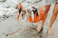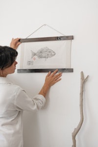 Each fish can be printed more than once (sometimes 3/4 depends on conditions), but all prints are unique. In the end, the fish are clean and ready for consumption, with no waste. The fabrics are bed sheets reclaimed from various hotels (waste cause little stains are huge). And so we complete a circle where art and sustainability complement each other.